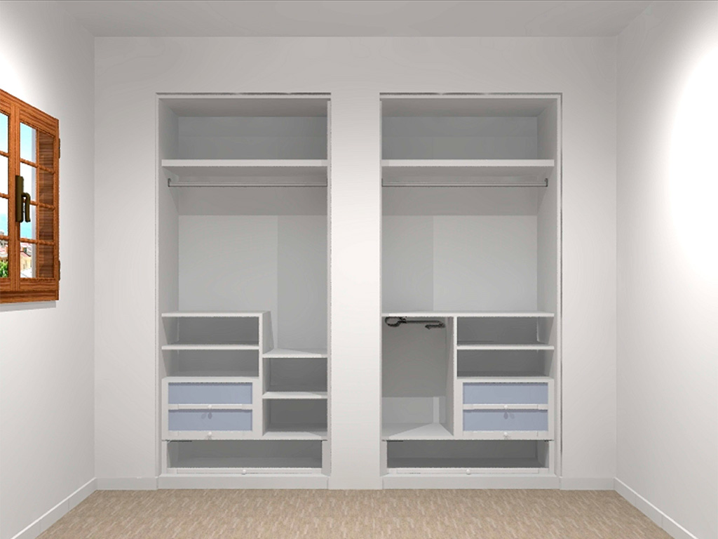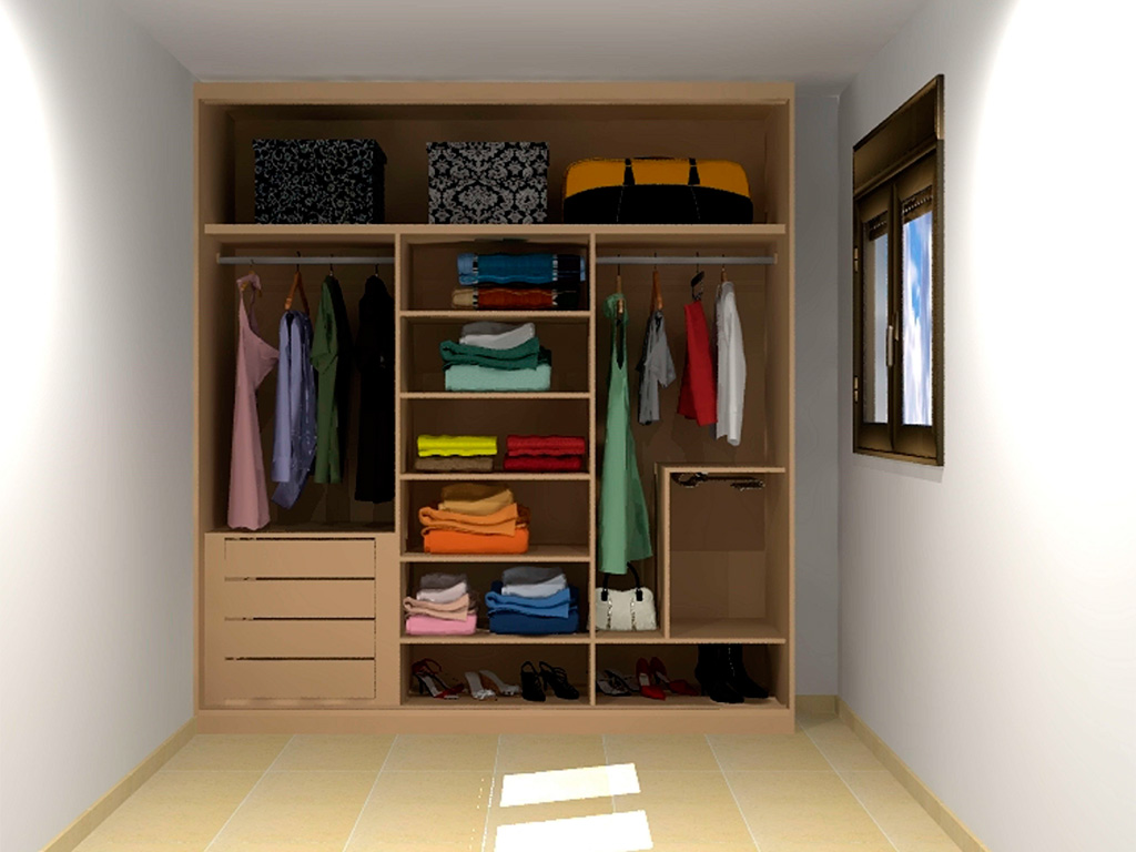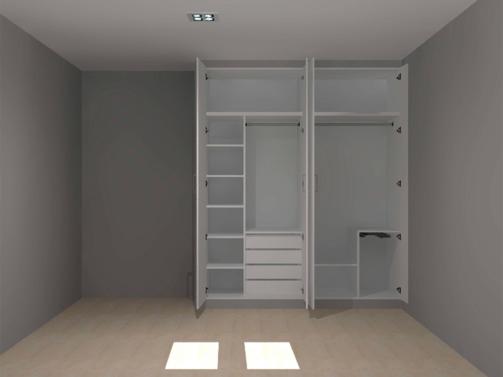 Diseñamos sus armarios y vestidores en 3D, tanto el frente como el interior. Un sofistidado sistema informático permite elegir y combinar los diferentes elementos para construir el armario que mejor se adapte a sus necesidades. Podrá ver una imagen realista de su diseño para tener una idea de su aspecto e introducir más cambios. Selecciones las puertas en varios estilos, medidas y colores. En el interior podrá combinar un sinfín de elementos como cajones, percheros, baldas o zapateros. Estos son varios ejemplos de la infinidad de combinaciones disponibles.